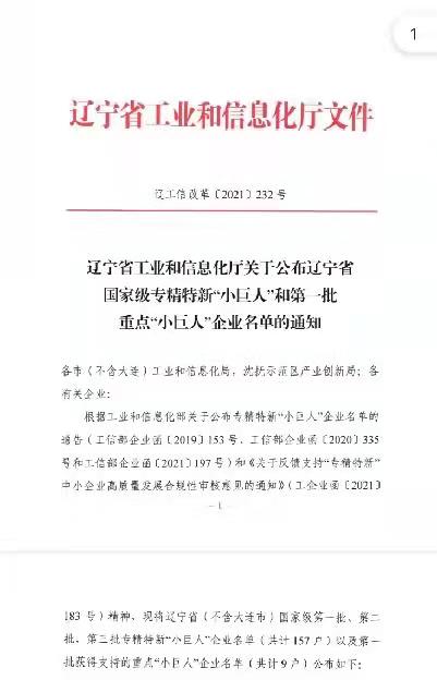 遼寧省工業和信息化廳關于公布遼寧省*********專精特新“小巨人”和第一批重點“小巨人”企業名單的通知