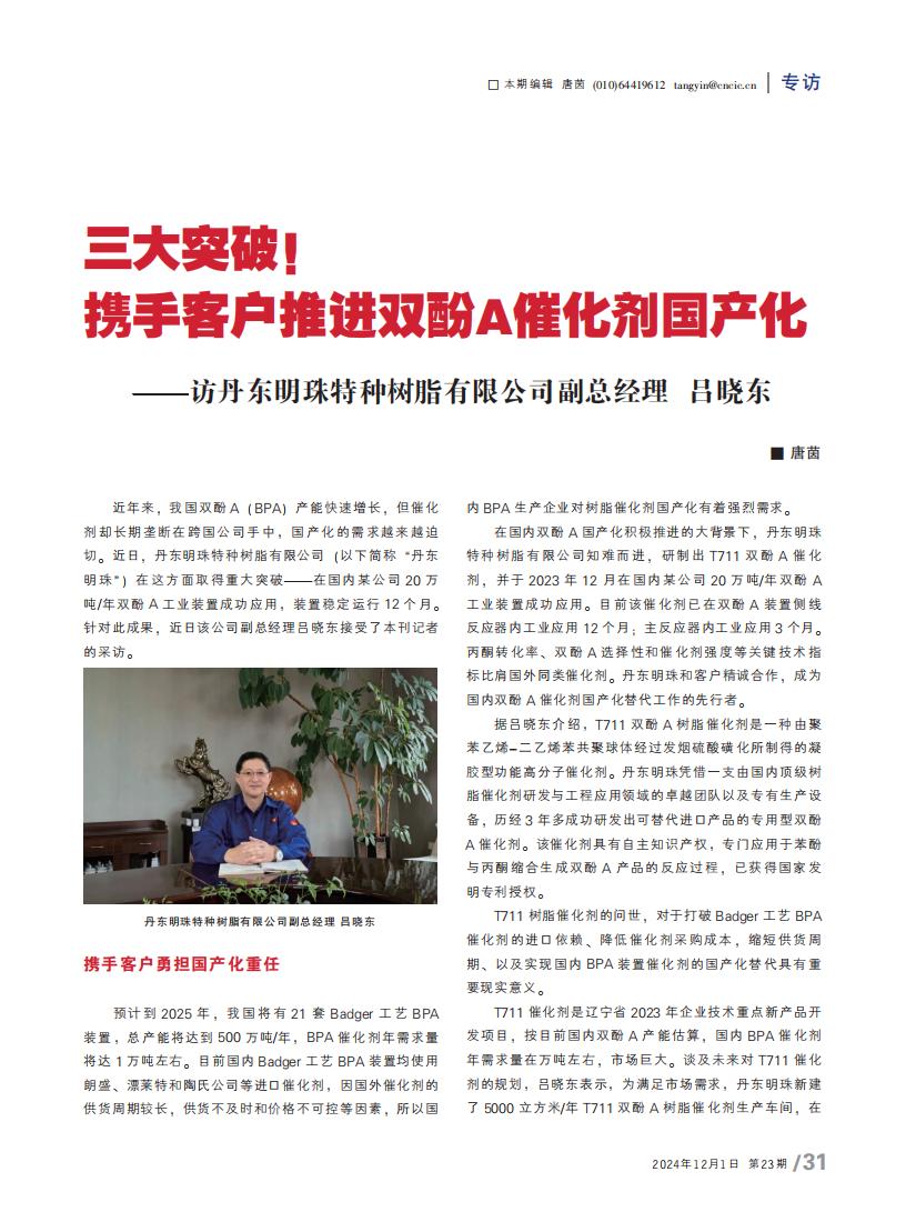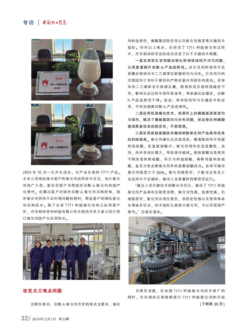三大突破!攜手客戶推進(jìn)雙酚A催化劑國產(chǎn)化